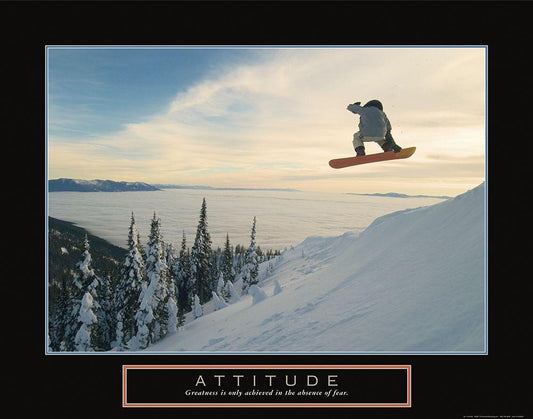 Attitude - Snowboarder White Modern Wood Framed Art Print with Double Matting by Frontline