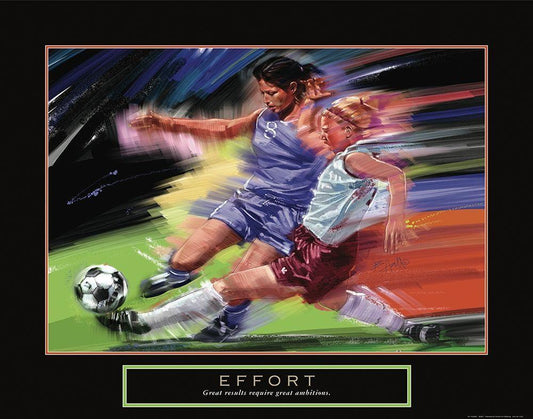 Effort - Girl Soccer White Modern Wood Framed Art Print with Double Matting by Frontline