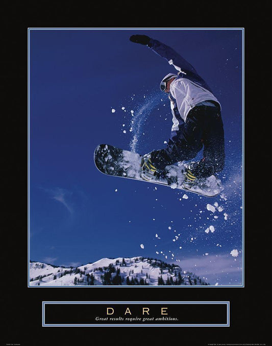 Dare - Snowboarder White Modern Wood Framed Art Print with Double Matting by Frontline