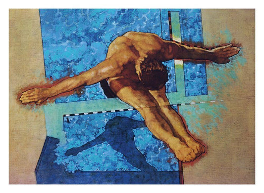 Olympic High Dive White Modern Wood Framed Art Print with Double Matting by Frontline
