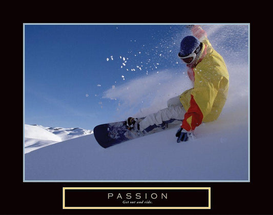 Passion - Snowboarding White Modern Wood Framed Art Print with Double Matting by Frontline