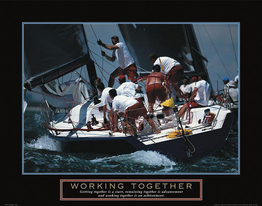 Working Together - Sailing White Modern Wood Framed Art Print with Double Matting by Frontline
