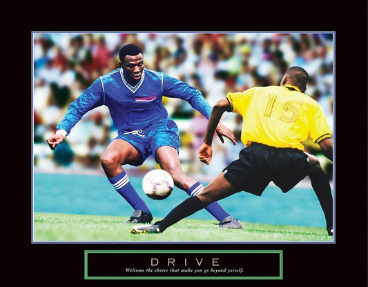Drive - Soccer White Modern Wood Framed Art Print with Double Matting by Frontline