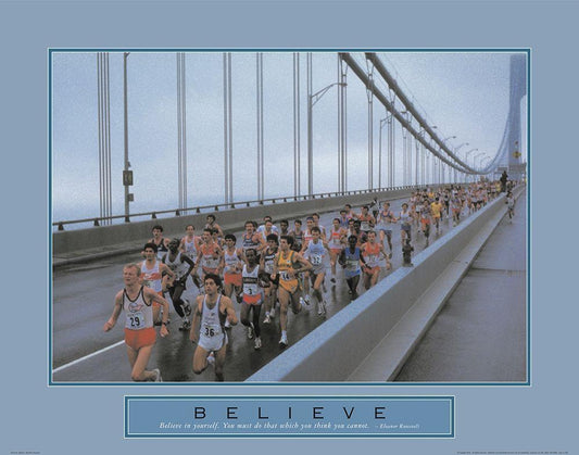 Believe - NYC Marathon White Modern Wood Framed Art Print with Double Matting by Unknown