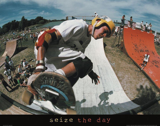 Reach for the Sky - Skateboarder White Modern Wood Framed Art Print with Double Matting by Unknown