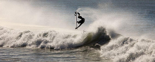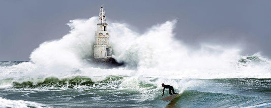 Extreme Surfer White Modern Wood Framed Art Print with Double Matting by Anonymous