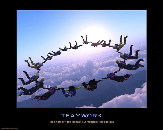 Teamwork White Modern Wood Framed Art Print with Double Matting by Anonymous