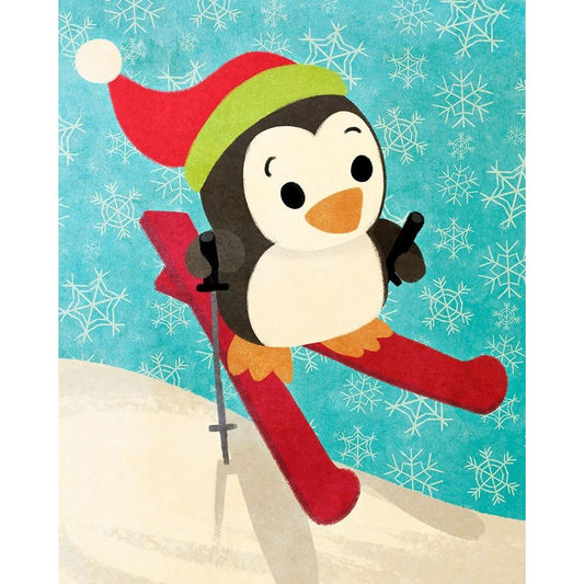 Skiing Penguin Black Modern Wood Framed Art Print with Double Matting by Josefina