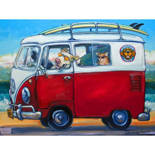 Sunup Surfdogs Black Modern Wood Framed Art Print with Double Matting by Townsend, Connie R.