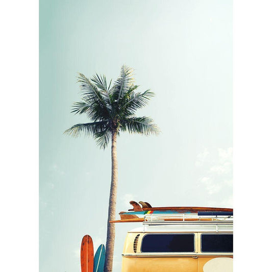 Surf Bus Yellow Black Modern Wood Framed Art Print with Double Matting by Design Fabrikken