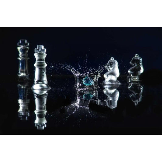 Chess Splash 1 Black Modern Wood Framed Art Print with Double Matting by Kostka, Vladimir