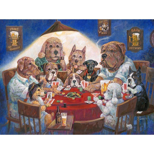 Poker Dogs Black Modern Wood Framed Art Print with Double Matting by Manning, Ruane