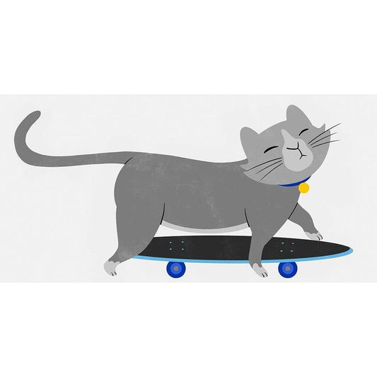Skateboarding Cat Black Modern Wood Framed Art Print with Double Matting by Prime, Marcus