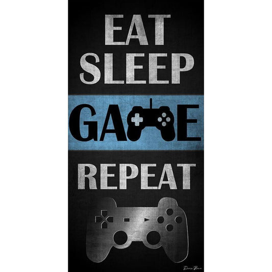 Eat Sleep Game Repeat Black Modern Wood Framed Art Print with Double Matting by Brown, Denise