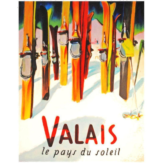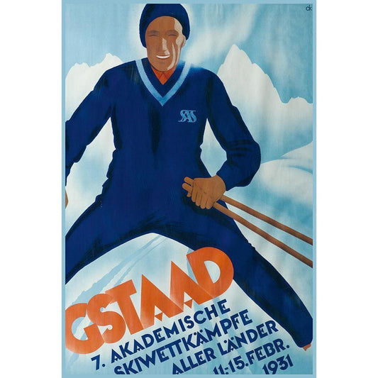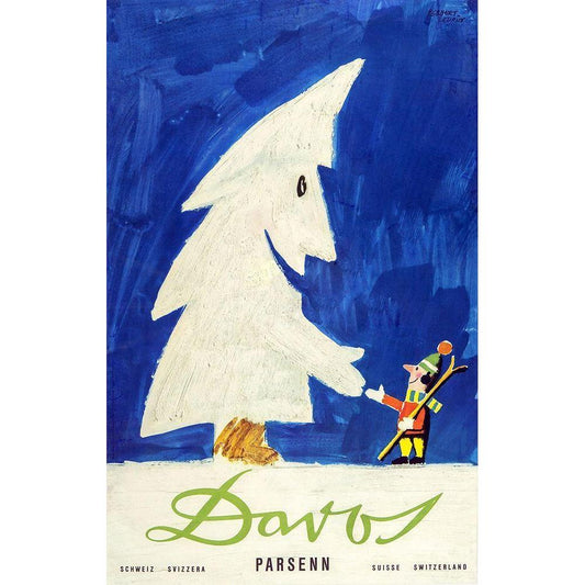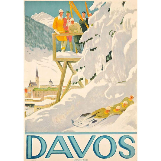 Davos Skiing Black Modern Wood Framed Art Print with Double Matting by Vintage Apple Collection
