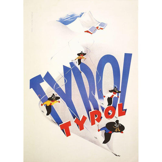 Austria_Ski Black Modern Wood Framed Art Print with Double Matting by Vintage Apple Collection