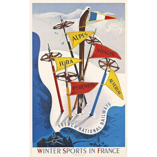 France Winter Sports Black Modern Wood Framed Art Print with Double Matting by Vintage Apple Collection