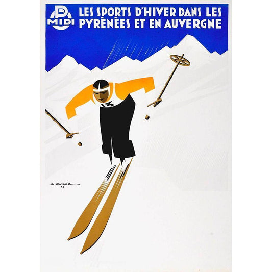 Sports D‘Hiver Black Modern Wood Framed Art Print with Double Matting by Vintage Apple Collection