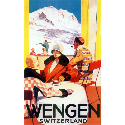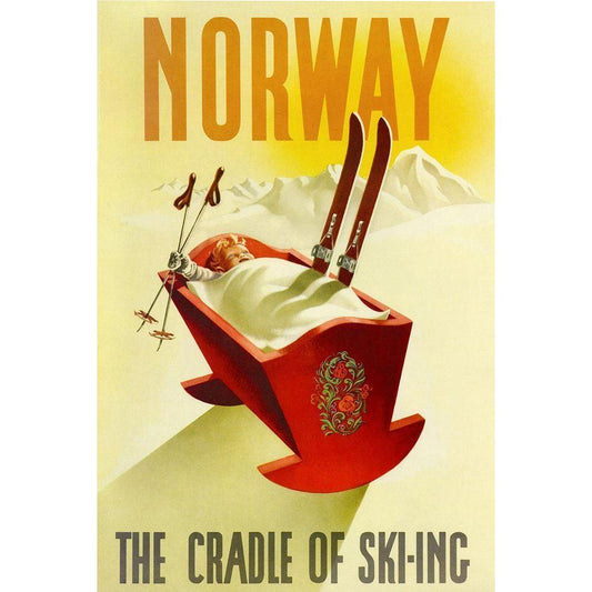 Norway Cradle Skiing Black Modern Wood Framed Art Print with Double Matting by Vintage Apple Collection