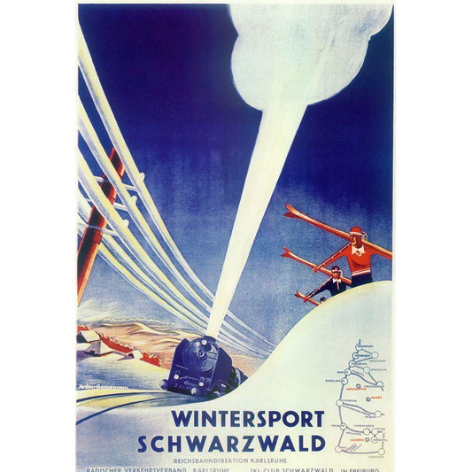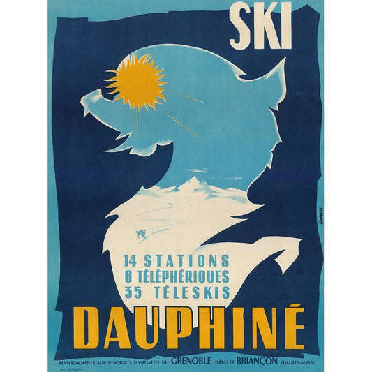 Ski Dauphine Black Modern Wood Framed Art Print with Double Matting by Vintage Apple Collection