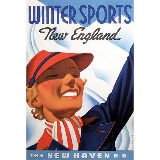 Winter Sports Black Modern Wood Framed Art Print with Double Matting by Vintage Apple Collection