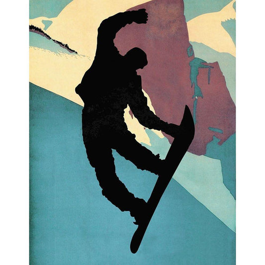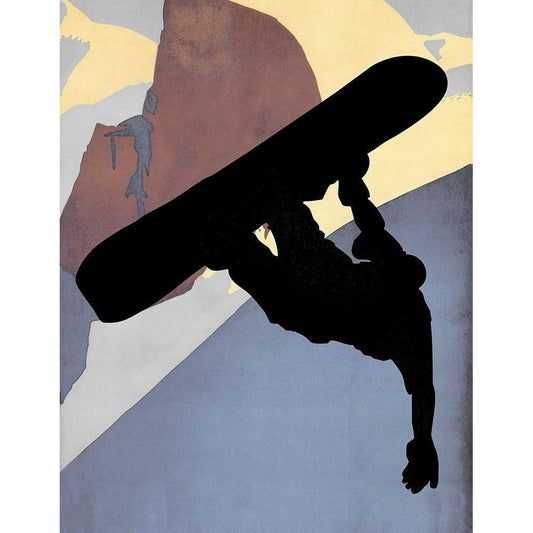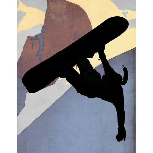 Snowboarding Dude Evening Light Black Modern Wood Framed Art Print with Double Matting by Lavoie, Tina