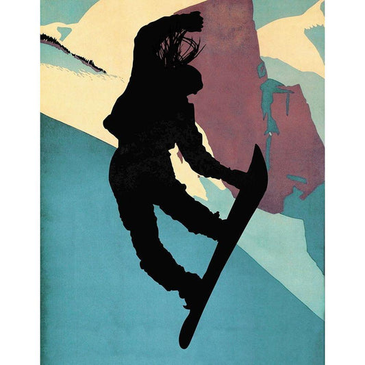Snowboarding Betty Evening Light Black Modern Wood Framed Art Print with Double Matting by Lavoie, Tina
