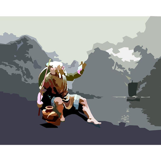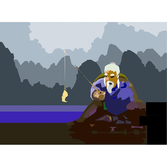Old Fisherman Black Modern Wood Framed Art Print with Double Matting by Pansanit, Surapol
