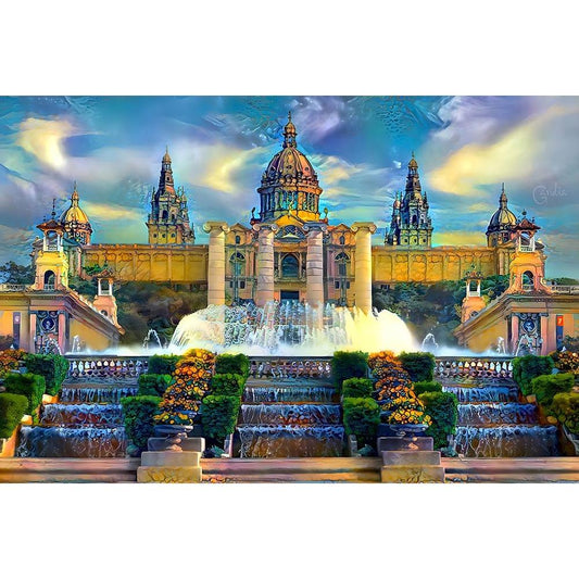 Barcelona Spain Montjuic Black Modern Wood Framed Art Print with Double Matting by Gavidia, Pedro
