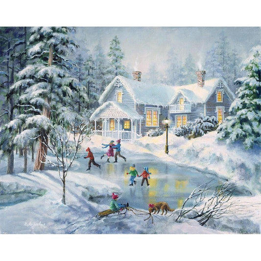 Moscow Russia Saint Basils Cathedral Kremlin Red Square ice snow and skating Black Modern Wood Framed Art Print with Double Matting by Gavidia, Pedro