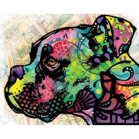 Happy Boxer Black Modern Wood Framed Art Print with Double Matting by Dean Russo Collection