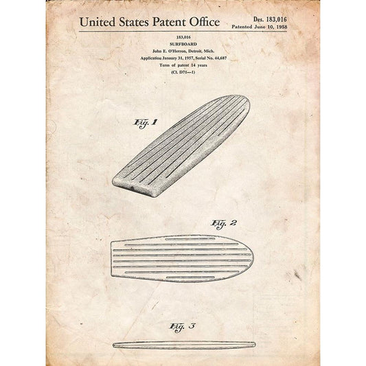 PP201- Vintage Parchment Surfboard Poster Black Modern Wood Framed Art Print with Double Matting by Borders, Cole