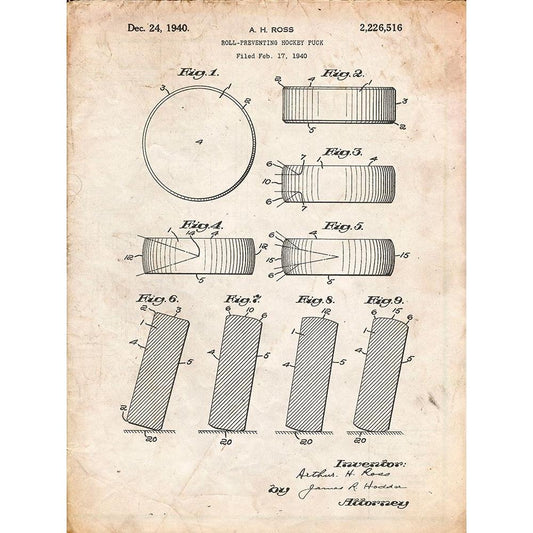 PP290-Vintage Parchment Hockey Puck Patent Poster Black Modern Wood Framed Art Print with Double Matting by Borders, Cole