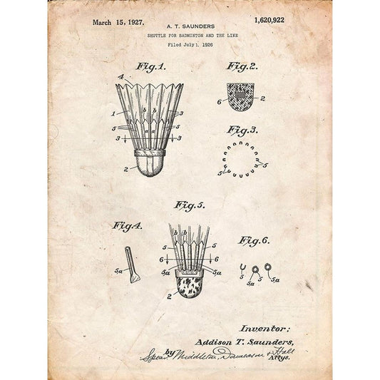 PP345-Vintage Parchment Vintage Badminton Shuttle Patent Poster Black Modern Wood Framed Art Print with Double Matting by Borders, Cole