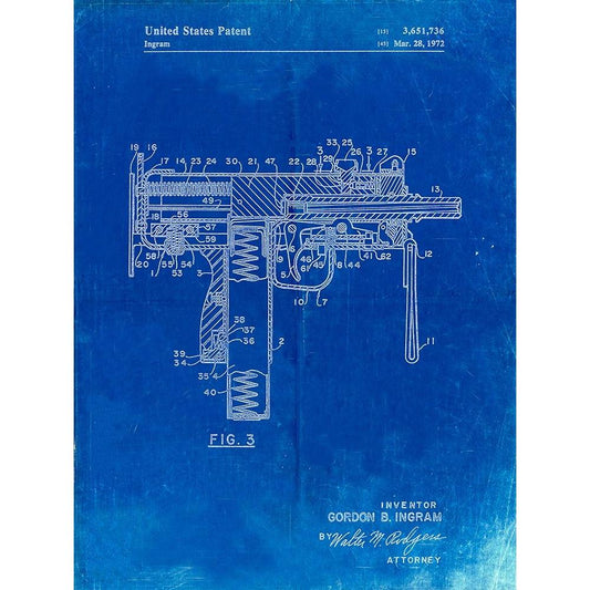 PP584-Faded Blueprint Mac-10 Uzi Patent Poster Black Modern Wood Framed Art Print with Double Matting by Borders, Cole