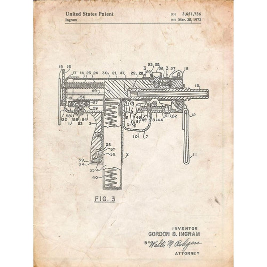 PP584-Vintage Parchment Mac-10 Uzi Patent Poster Black Modern Wood Framed Art Print with Double Matting by Borders, Cole