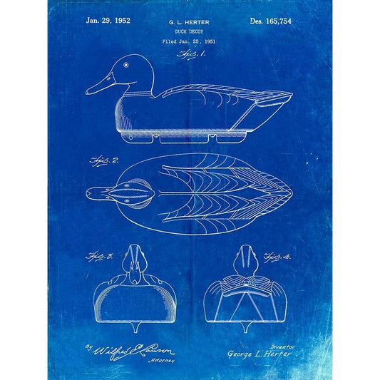 PP1001-Faded Blueprint Propelled Duck Decoy Patent Poster Black Modern Wood Framed Art Print with Double Matting by Borders, Cole