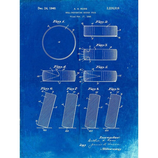 PP290-Faded Blueprint Hockey Puck Patent Poster Black Modern Wood Framed Art Print with Double Matting by Borders, Cole