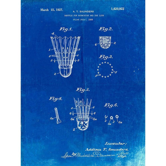 PP345-Faded Blueprint Vintage Badminton Shuttle Patent Poster Black Modern Wood Framed Art Print with Double Matting by Borders, Cole