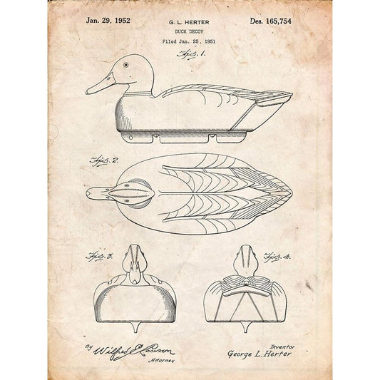 PP1001-Vintage Parchment Propelled Duck Decoy Patent Poster Black Modern Wood Framed Art Print with Double Matting by Borders, Cole
