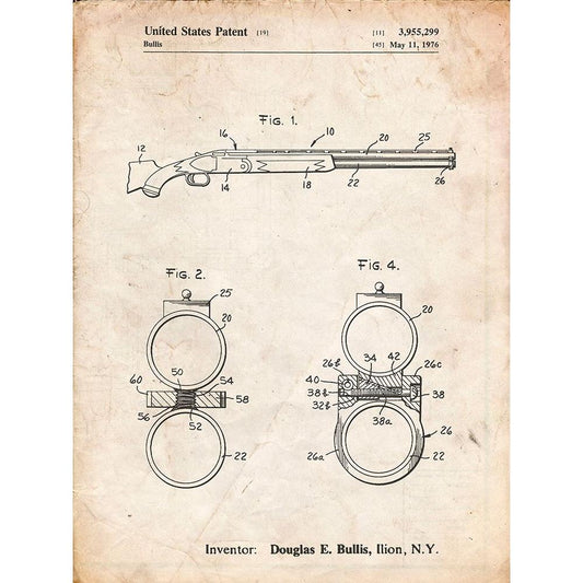 PP1012-Vintage Parchment Remington Shotgun Patent Print Black Modern Wood Framed Art Print with Double Matting by Borders, Cole