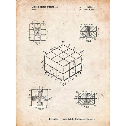 PP1022-Vintage Parchment Rubiks Cube Patent Poster Black Modern Wood Framed Art Print with Double Matting by Borders, Cole