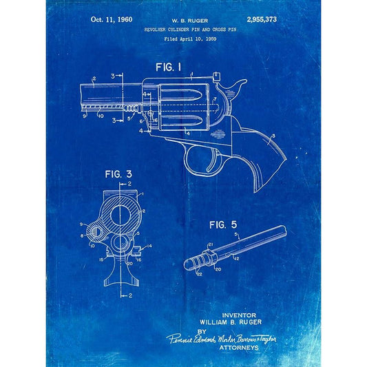 PP1023-Faded Blueprint Ruger Revolver Patent Art Black Modern Wood Framed Art Print with Double Matting by Borders, Cole