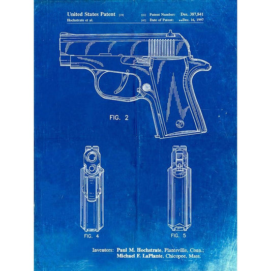 PP1034-Faded Blueprint Sig Sauer P220 Pistol Patent Poster Black Modern Wood Framed Art Print with Double Matting by Borders, Cole