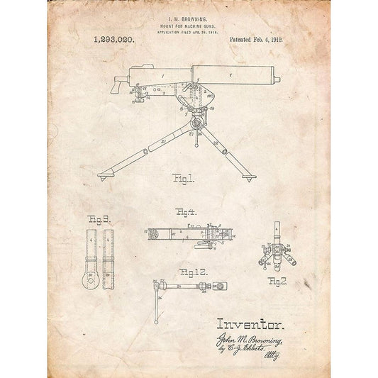PP964-Vintage Parchment Mount for Machine Gun Patent Poster Black Modern Wood Framed Art Print with Double Matting by Borders, Cole
