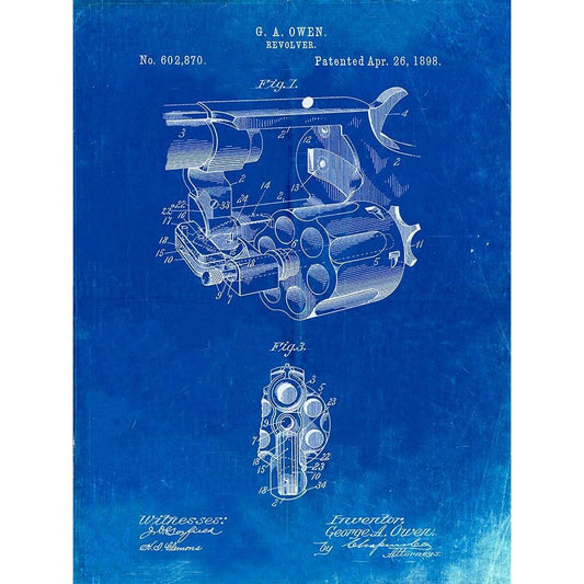 PP980-Faded Blueprint Owen Revolver Patent Art Black Modern Wood Framed Art Print with Double Matting by Borders, Cole