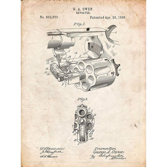 PP980-Vintage Parchment Owen Revolver Patent Art Black Modern Wood Framed Art Print with Double Matting by Borders, Cole