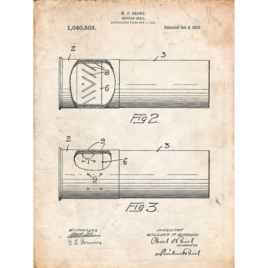 PP1033-Vintage Parchment Shotgun Shell Patent Print Black Modern Wood Framed Art Print with Double Matting by Borders, Cole