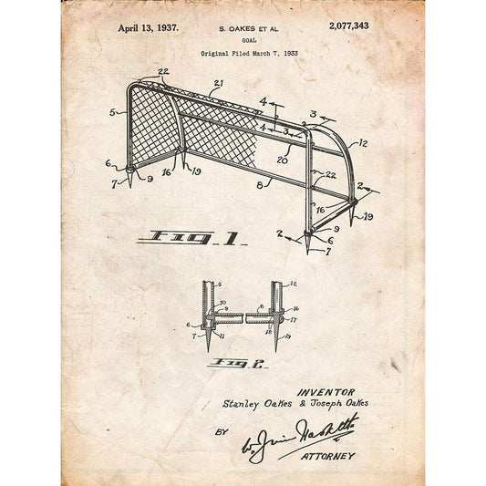 PP1048-Vintage Parchment Soccer Goal Patent Art Black Modern Wood Framed Art Print with Double Matting by Borders, Cole