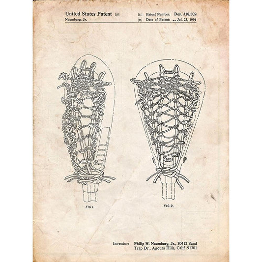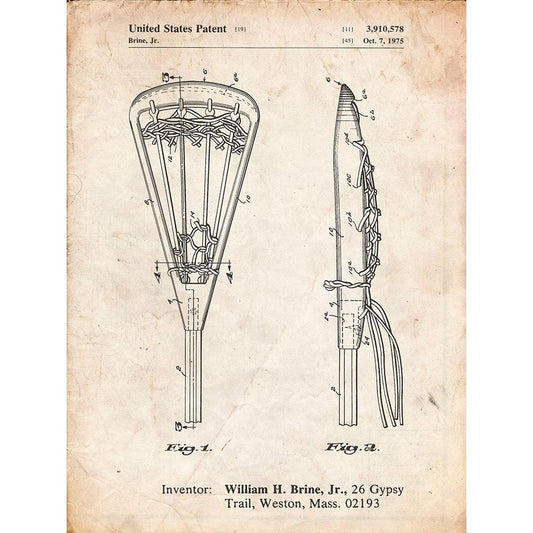 PP916-Vintage Parchment Lacrosse Stick Patent Poster Black Modern Wood Framed Art Print with Double Matting by Borders, Cole